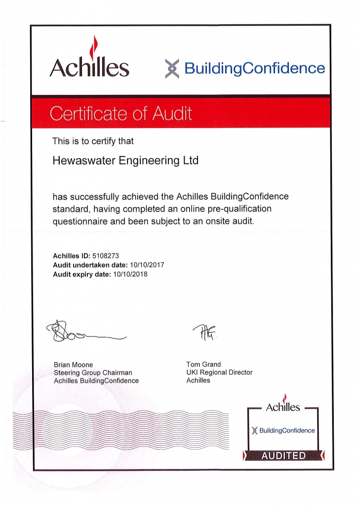 We are pleased to announce that we have been approved by Achilles having attained the required Building Confidence standard. This standard is used by many leading construction companies as part of their supply chain qualification process. These companies include Balfour Beatty, Skanska, Kier to name just a few.